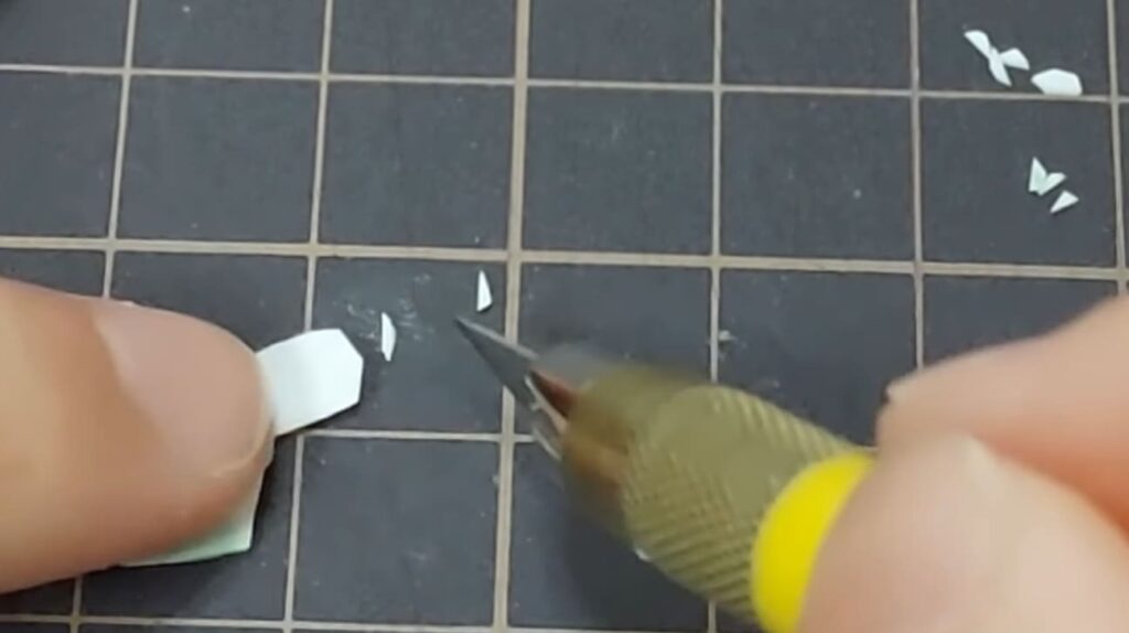 白と緑のグラデーション粘土を薄くのばしたものをしっかりと乾燥させたら細かくカットします。